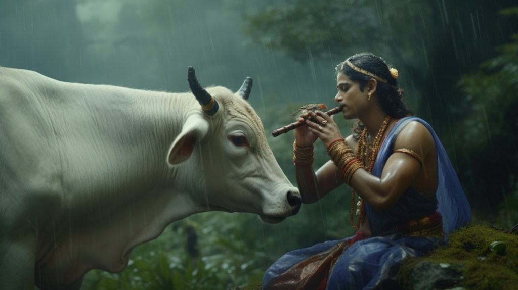 In Hinduism, the White Bull of Heaven is Nandi — the vahana or vehicle of Lords Shiva and Krishna. This association communicates in symbolic shorthand that God’s Will for our return is the driving force behind the actions of both Shiva and Krishna. Moreover, Nandi’s legs are said to represent the four pillars of Dharma — the path of rightminded living. In Vedic traditions, those four pillars are Satya, Tapa, Daya, and Daan.