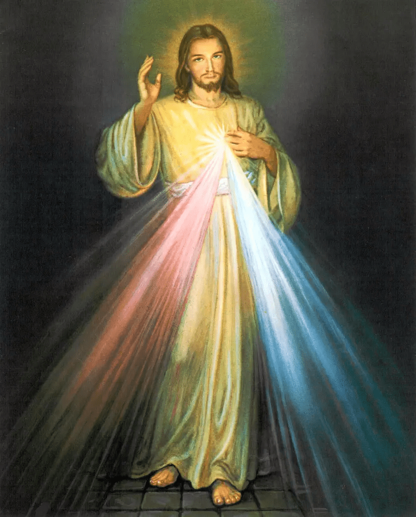 In Christian theology, Yod represents the Blood of Christ, whilst Mem is the Living Water; In Judaism, Yod is Boaz, whilst Mem is Boaz. In Hinduism, Yod is Nara, whilst Mem is Narayana. We also see these two “rays” or “beams” shining out of the heart of Jesus in portrayals of his “Divine Mercy” apparition. Notice the position of the rays, which never change. The red ray is always on the left, whilst the pale ray is always on the right (when we’re looking at Jesus).