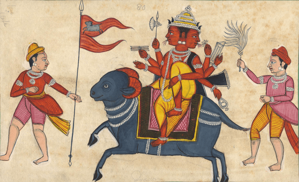 According to the Rigveda, Vayu sprang from the “breath” of Virat Purusha, the invisible Cosmic Being ensouling the creatures of the manifest universe. Vayu’s vehicle (vahana) is an antelope symbolizing the power of grace in two streams. Ergo, Vayu carries out his God-divined “mission” through the twin waters or streams.
