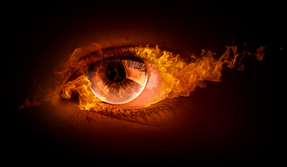 The fiery eye of God is a phrase also found in the Bible. In Revelation, for example, the Great Amen (Jesus Christ) is described as having “eyes like a flame of fire.” We’re also told by various prophets that a “fiery eye” looked out from the center of the wheel supported by the four Living Beings.