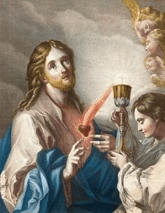 The rishis clearly state in this Sukta that Soma, the Great I Am of Christ, is “the father unto” Indra, the king of the devas. Indra himself is carried by Airavata, the Great Elephant representing the seven spouts of the fountain or Wellspring, while Indra’s cloud-chariot carries all our Souls when they’re ready to awaken. And this tracks with the Christian view that the blood of Christ is supplied to us by Jesus. It also fits with Sister Faustina’s vision of the Divine Mercy rays beaming forth from Christ’s heart (as depicted below, in the painting she commissioned at Christ’s behest).