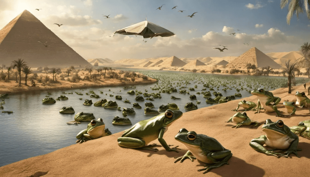 Let’s move on to the second plague, the supposed frog-invasion in Egypt. The big mystery to be solved herein is the true definition of tsephardea, the word translated as “frog” throughout the Old Testament. Since a plague of frogs makes no sense in the framework of spiritual truth, I’m guessing tsephardea is a compound of tsephara (dawning) and dea (knowledge, perception, or judgment).