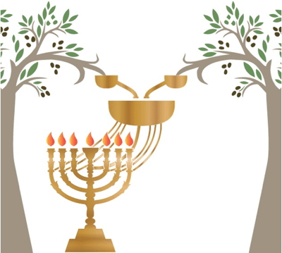 The rishis tell us herein that the three vessels kindling the melody flow down to us as seven thundering streams. Helena Blavatsky, the co-founder of Theosophy, said something along these same lines pertaining to the seven rays. Essentially, the three Aspect Rays join in various combinations to form the four Rays of Attribute. We also see this idea depicted in the illustration below of Zechariah 4, showing the three bowls flowing down (from the olive trees) into the Menorah’s seven branches.