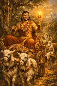 Jesus said something similar in the prayer I shared earlier from the Course. The Rays still exist undisturbed in God’s sustaining peace. In the Vedas, Pusan is the name of an Aditya, a solar deity parented by Aditi and Kashyapa. More specifically, Pushan acts as the deific protector and guide for travelers. Tellingly, he presides over meetings, marriages, journeys, roads, and cattle. When accurately depicted, he dons a beard, carries a goad, and rides in a goat-drawn chariot. Pusan can also be read as a compound of Pus (sustaining) and san (peace), making a pusan “God’s sustaining peace”–an expression also found in the Bible.